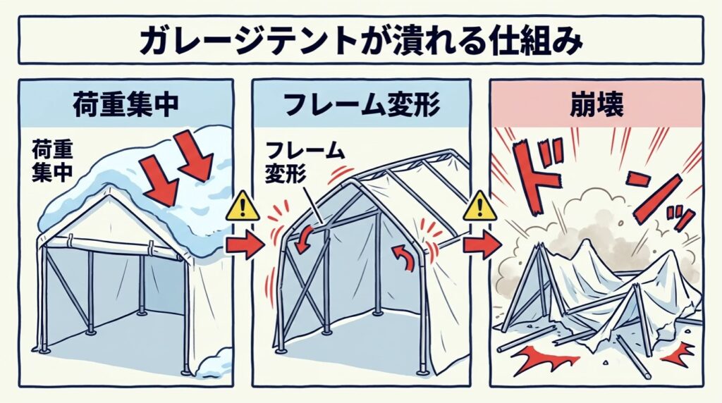 「ガレージテントって、雪で潰れないの?」