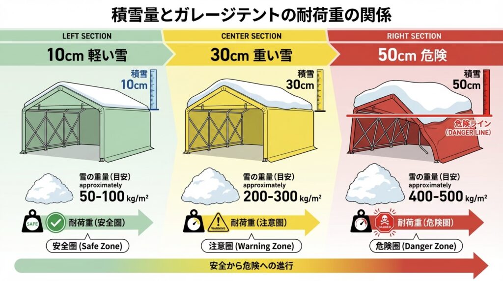 ・ガレージテントが耐えられる積雪の目安