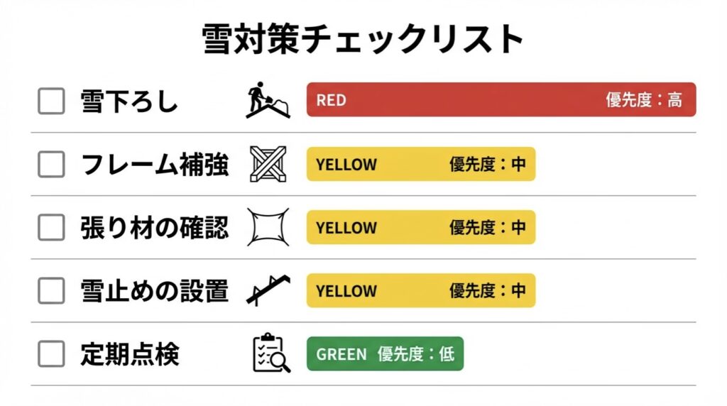 【雪国必見】ガレージテントの積雪目安と雪下ろし・保険の基礎