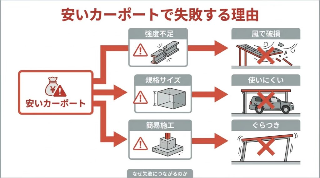 安いカーポートで起きやすい失敗例