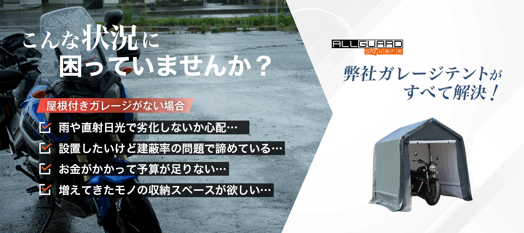 安心安全に組み立てられるガレージテント、それがALLGUARDです。